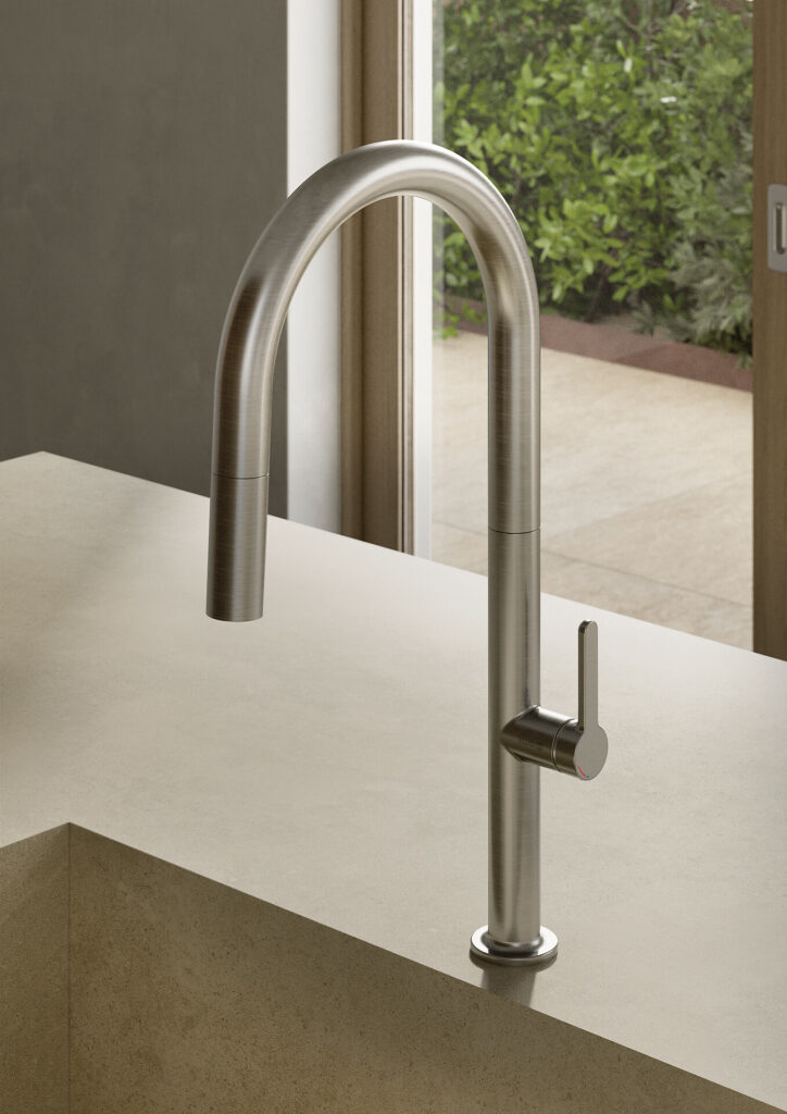 Zudem sind die Armaturen je nach Serie in bis zu sechs stilvollen Farbtönen erhältlich: Chrom, Mattschwarz, Brushed Gold, Brushed Bronze, Brushed Gunmetal und Brushed Nickel. Diese Farbvielfalt ermöglicht eine perfekte Anpassung an unterschiedlichste Küchendesigns.